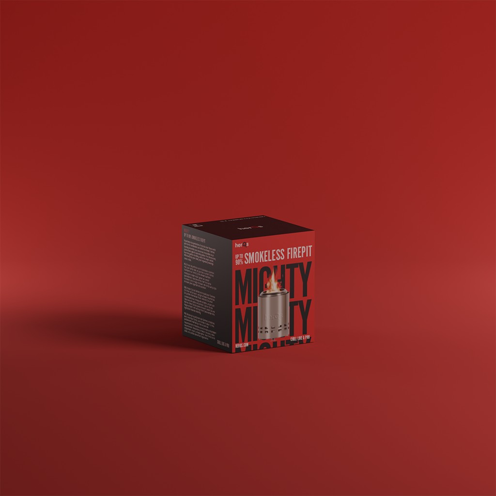 herQs Smokeless FirePit - Mighty er beviset på, at lille kan være mægtig. Vores design forener kompakthed med kraft, hvilket gør den til en uundværlig tilføjelse til ethvert udendørs rum. Den kompakte størrelse går ikke på kompromis med funktionen og giver en vedvarende glæde ved ilden, der gør enhver terrasse til det perfekte sted at slappe af.