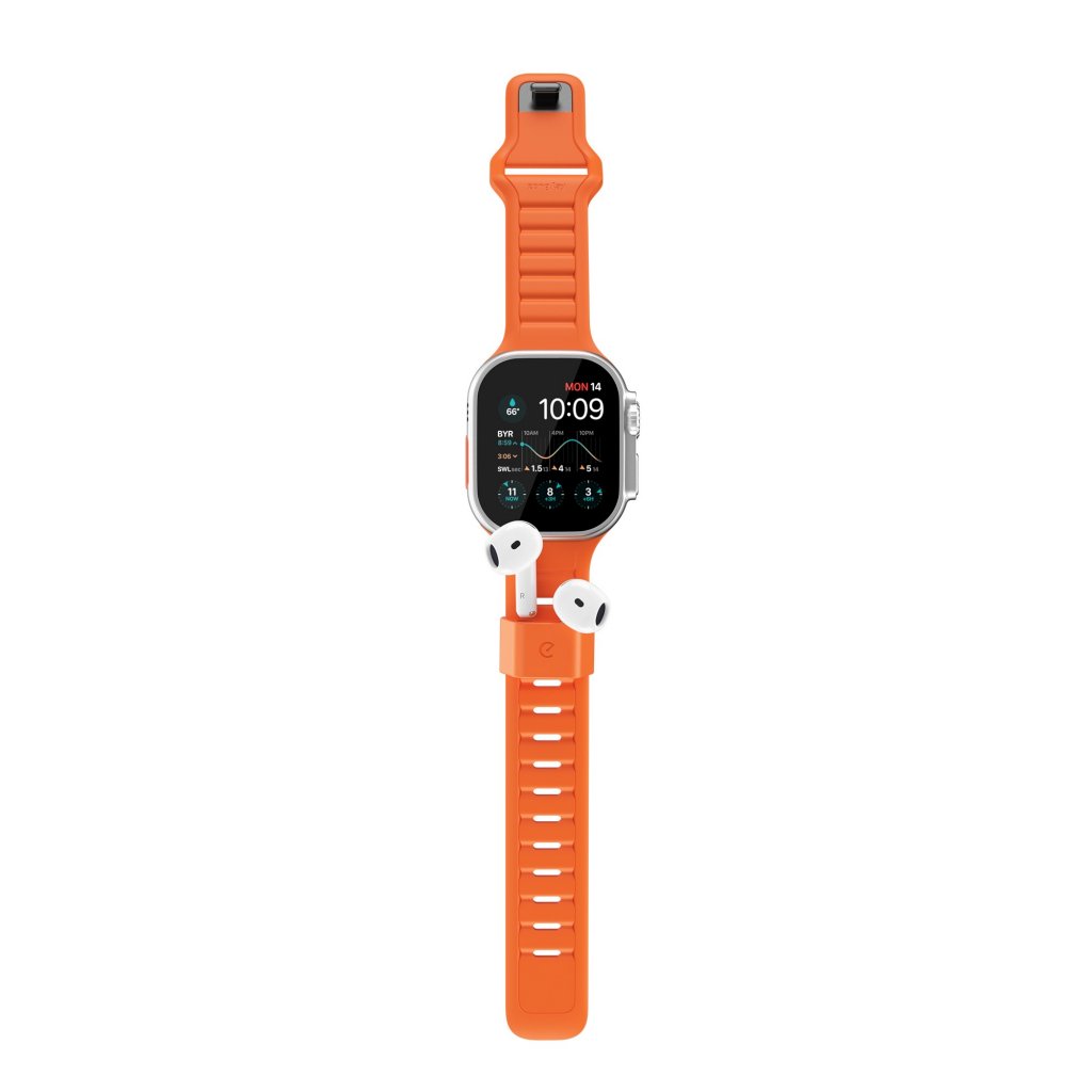 Docken bruger en premium soft-touch-silikone, der er designet til at holde dine AirPods sikkert på plads, samtidig med at den føles behagelig mod huden. Sammen med den fleksible FKM-rem er systemet skabt til lang tids brug, uanset om du er aktiv udendørs eller er på farten gennem en travl dag.