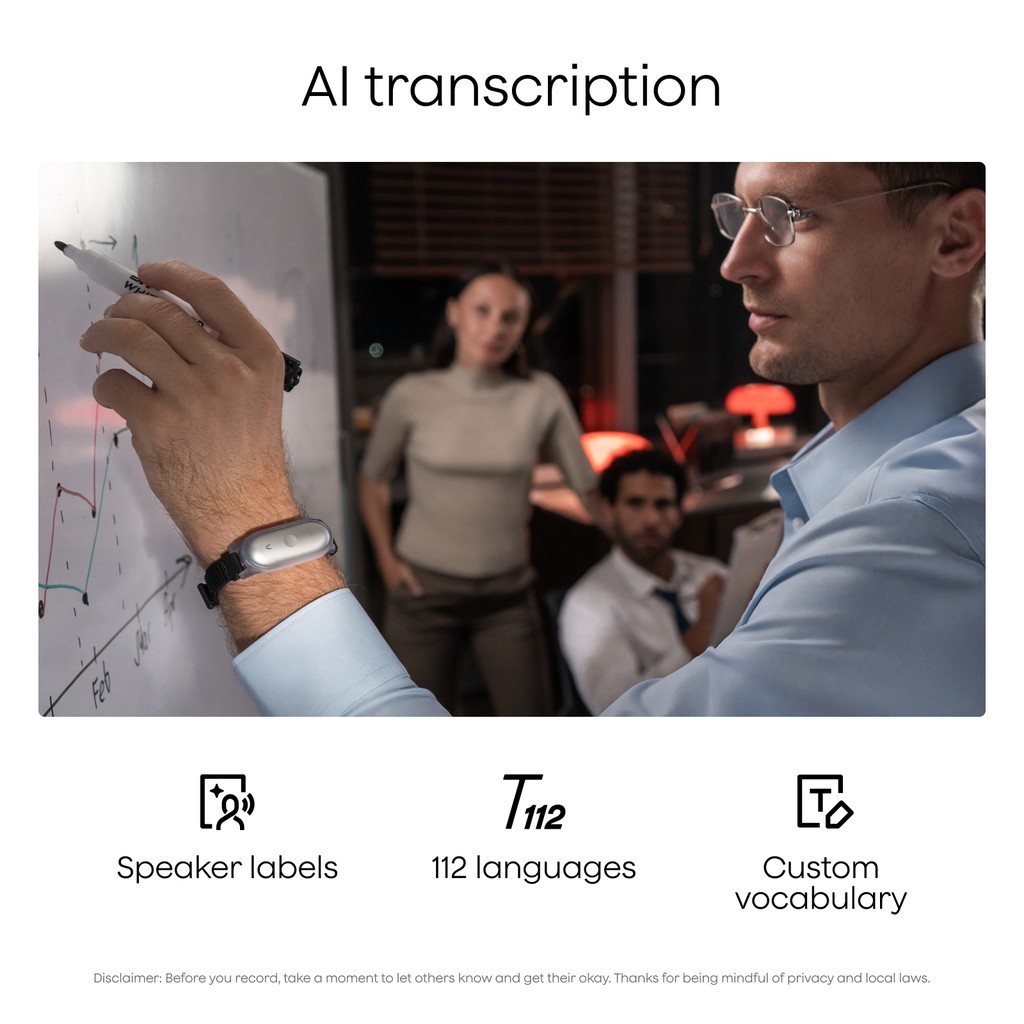 Oplev styrken ved intelligent stemmeoptagelse med dobbelte MEMS-mikrofoner og avanceret AI-teknologi. En taktil optageknap giver dig pålidelig og øjeblikkelig kontrol - tryk længe for at starte optagelsen med det samme, og tryk kort for at markere vigtige øjeblikke, mens de sker, med Press to Highlight. Vælg blandt brancheførende sprogmodeller som GPT-5.2, Claude Sonnet 4.5, Gemini 3 Pro eller endnu kraftigere modeller, efterhånden som de lanceres. NotePin S transskriberer dine optagelser på mere end 112 sprog med automatisk talegenkendelse, taleridentifikation, tilpasset ordforråd og automatisk formatering til krystalklare, letlæselige transskriptioner. Gør samtaler til handling med mere end 10.000 professionelle skabeloner og AI-drevet analyse - generér flerdimensionelle, rollespecifikke resuméer, der forvandler et enkelt møde, interview eller en spontan idé til strukturerede noter, der er tilpasset alle interessenter.