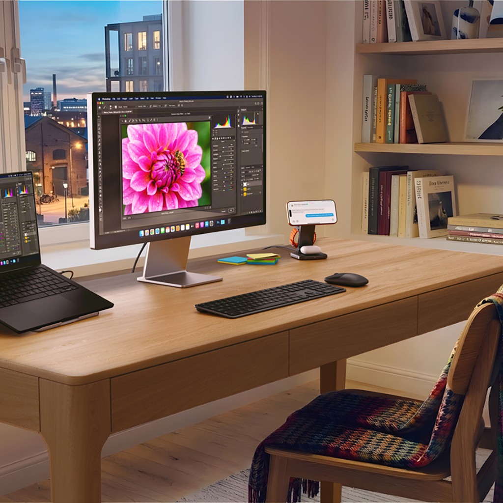 Lavprofilerede saksekontakt-taster giver en præcis og kontrolleret fornemmelse med mere lydsvage tastetryk, som passer til delte arbejdsområder og koncentrerede miljøer. Det slanke design holder din skriveposition komfortabel, samtidig med at det bevarer et eksklusivt og rent udtryk på ethvert skrivebord.