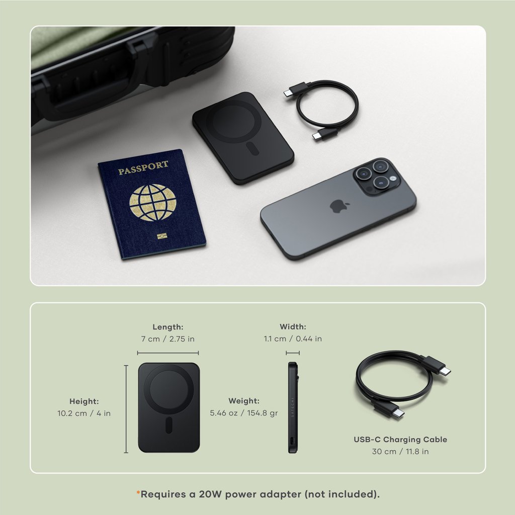 Experience charging speeds that keep pace with your busy lifestyle. The Satechi OntheGo™ Qi2 5K Magnetic Power Bank delivers impressive 15W wireless charging—twice as fast as standard 7.5W wireless options. This means less time waiting for your devices to power up and more time staying productive. The power bank also features USB-C connectivity with 20W output/input for additional charging options and quick recharging of the power bank itself.