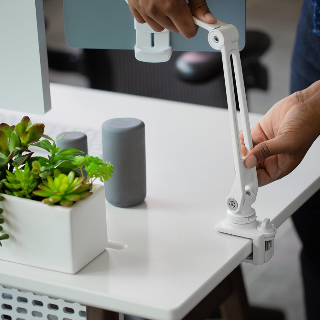 Meet the new and improved HoverBar Duo (2nd gen.). It combines everything you love about this flexible stand with the added QuickSwitch tab that lets you alternate between the desktop base and adjustable shelf clamp within seconds. It's an upgrade that matches the pace of your lifestyle.
