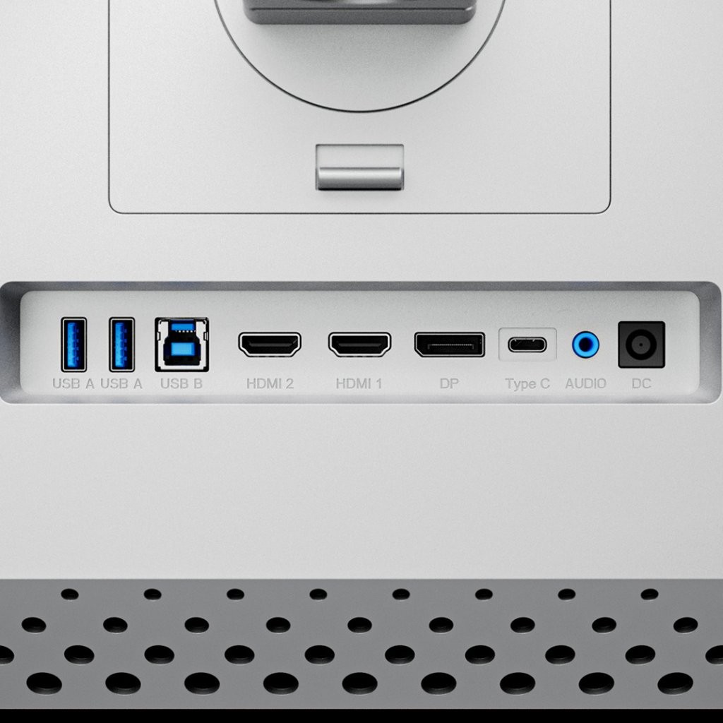 • Käytettävissä olevat portit: 2x HDMI 2.1, 1x DisplayPort 1.4, 2x USB-A ja 3,5 mm:n äänilähtö