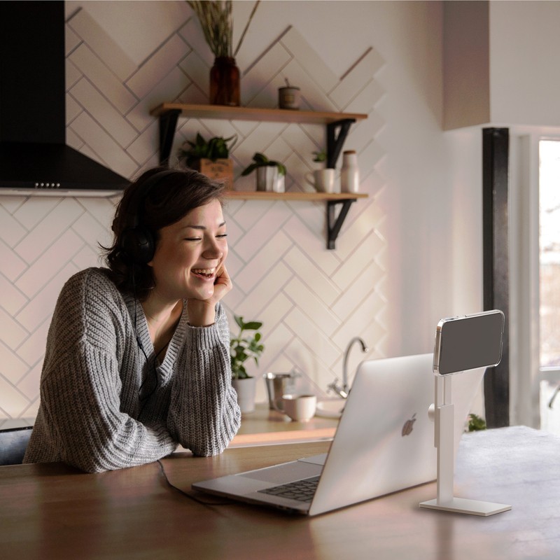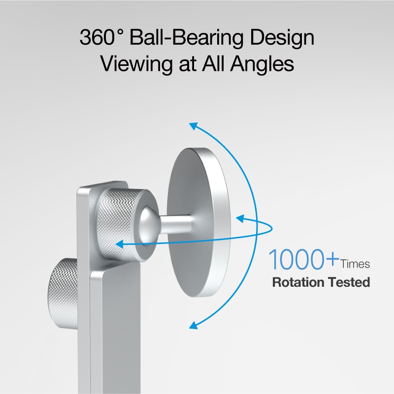 Välitämme mukavuudestasi. AluDisc™ Pro antaa käyttäjille mahdollisuuden säätää jalustan korkeutta jopa 12", mikä edistää ergonomista asentoa. Nauti vapaudesta räätälöidä iPhonen asento mieltymystesi mukaan.
