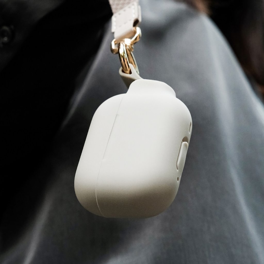 Mukana tulevan irrotettavan rannehihnan avulla AirPods Pro 2 -kotelon kantamisesta tulee mahdollisimman tyylikästä ja kätevää. Kiinnitä kuulokkeet tukevasti ranteeseesi tai laukkuusi; älä enää koskaan murehdi niiden hukkaan menemisestä.