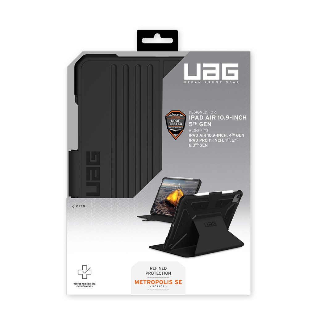 Koe vertaansa vailla oleva suojaus ja toiminnallisuus Urban Armor Gear (UAG) Metropolis SE -kotelossa, joka on suunniteltu yksinomaan iPad Air 10.9:lle (5. sukupolvi). Tässä tyylikkäässä ja tukevassa kotelossa yhdistyvät urbaani tyyli ja sotilasluokan suojaus, mikä takaa, että tablettisi pysyy turvassa ja valmiina mihin tahansa seikkailuun.
