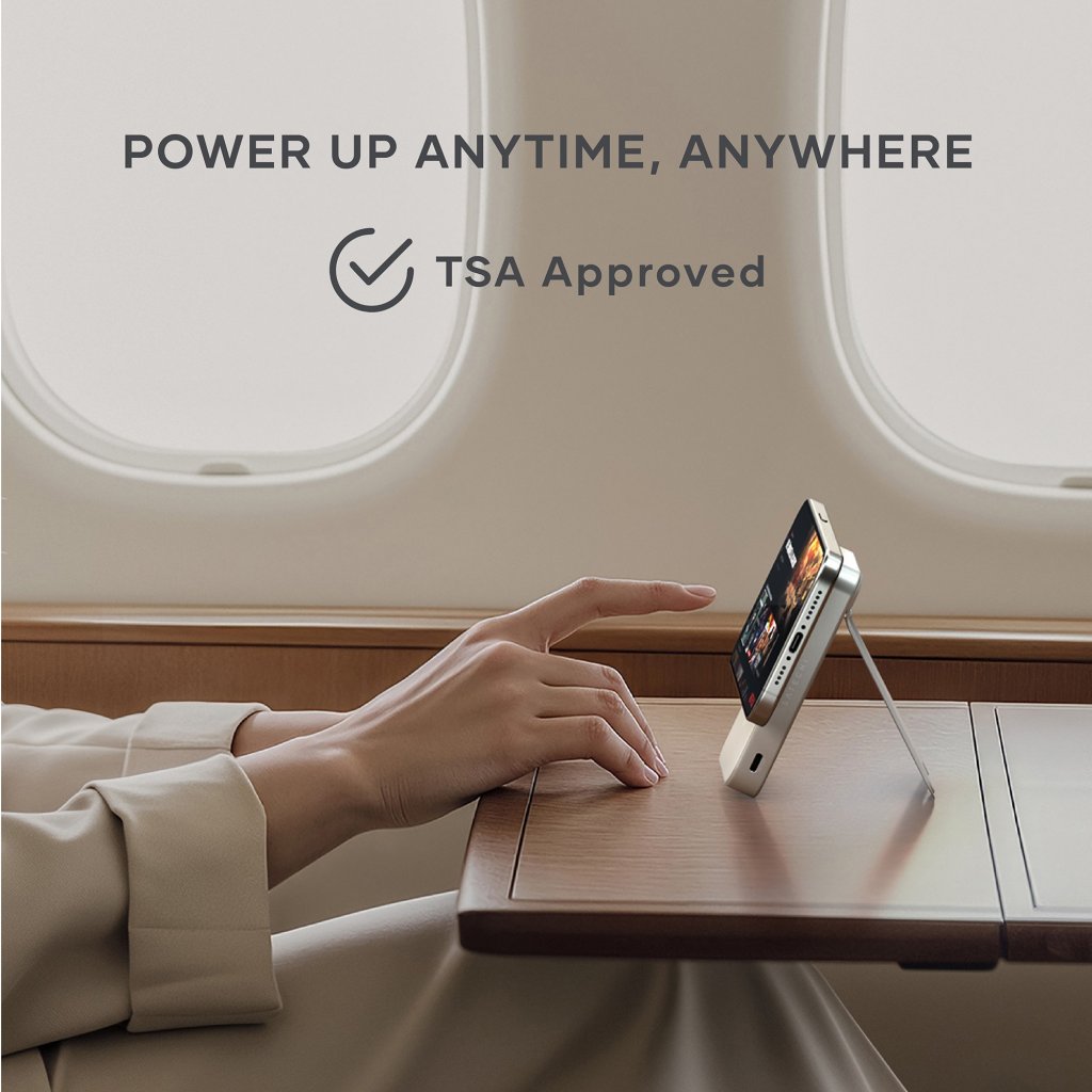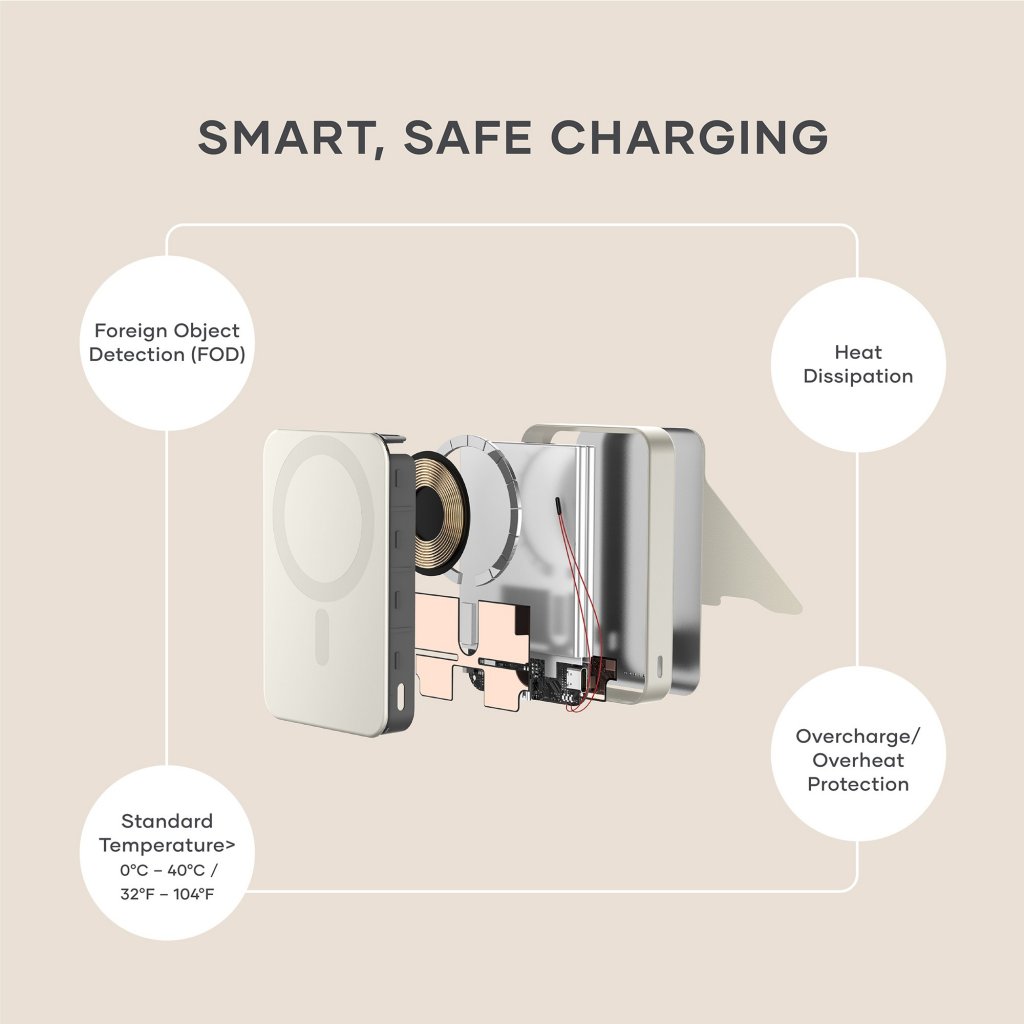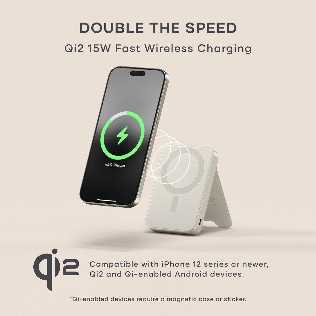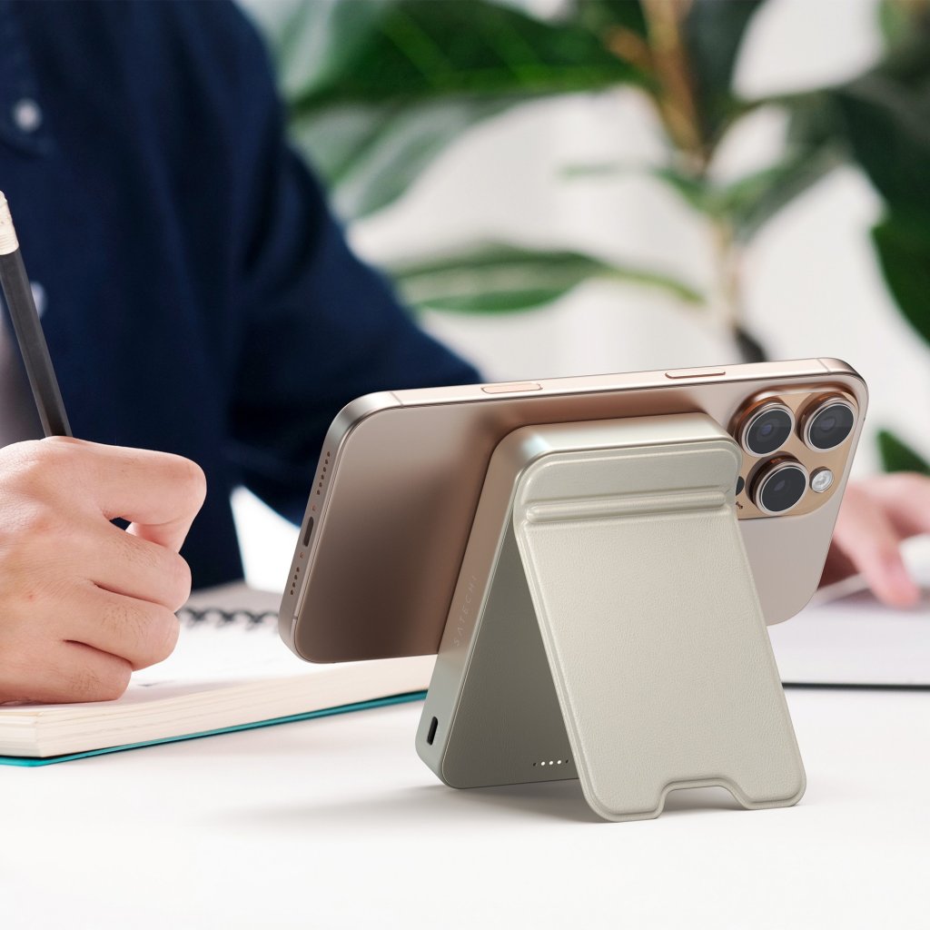 Satechi OntheGo™ Qi2 10K magnetisk strømbank med stativ - Sand