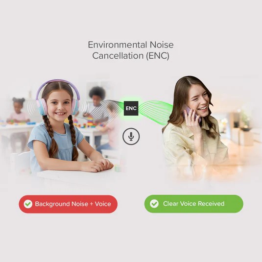 Innebygd Environmental Noise Cancellation bidrar til å redusere forstyrrende bakgrunnsstøy, slik at barnet ditt hører tydeligere og blir hørt tydeligere i samtaler, selv på steder med mer støy.