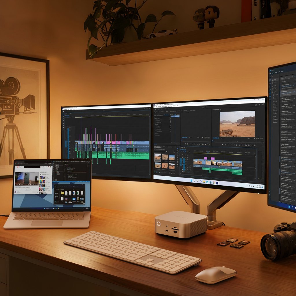 Gjør skrivebordet ditt om til en strømlinjeformet, høytytende arbeidsstasjon med Satechis Thunderbolt 5 CubeDock. Med én kabel kan du koble til flere høyoppløselige skjermer, overføre store filer i full Thunderbolt-hastighet, legge til rask NVMe-lagring og lade den bærbare PC-en med opptil 140 W strømforsyning.