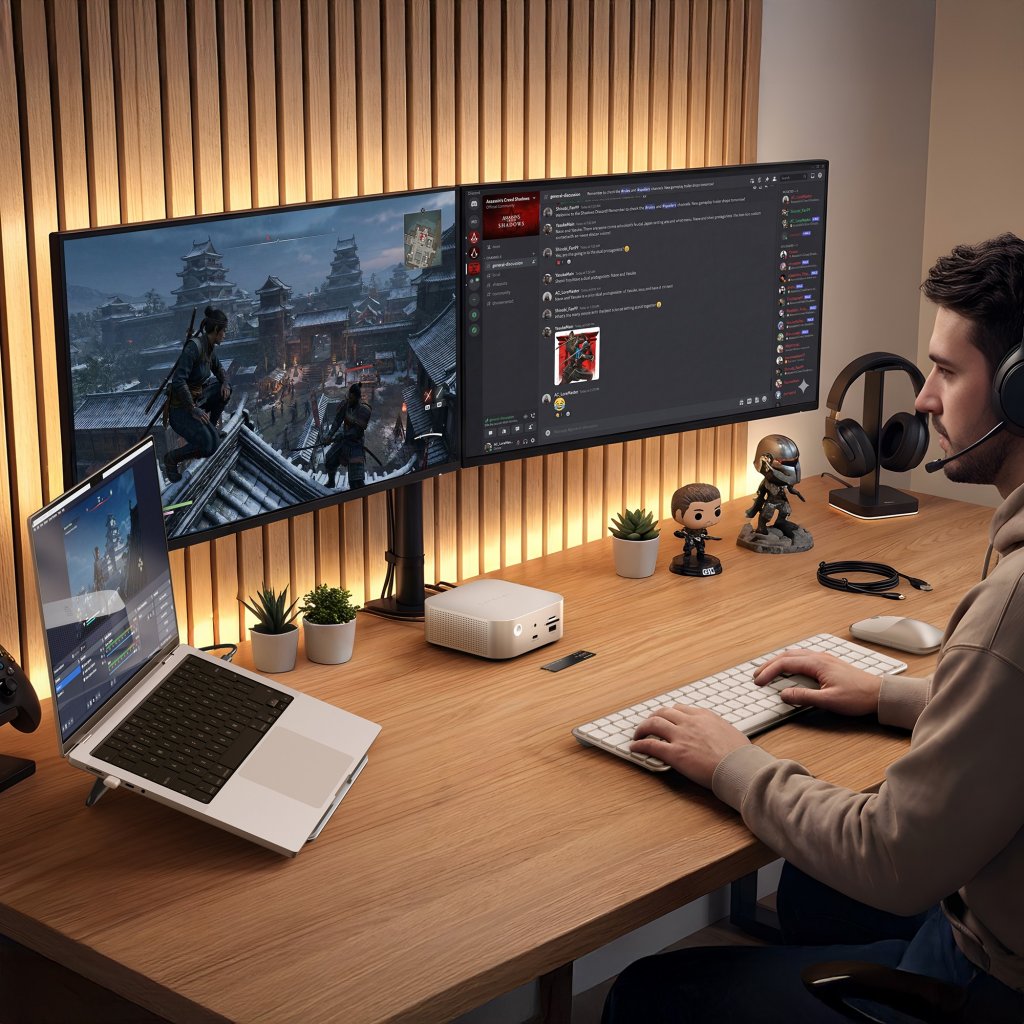 CubeDock er utviklet for arbeidsflyter med høy oppløsning og høy oppdateringsfrekvens, og støtter avanserte oppsett med flere skjermer på støttede enheter. På Windows-kompatible systemer kan den drive én skjerm i opptil 8K@144Hz, to skjermer i opptil 8K@120Hz eller tre skjermer i opptil 8K@60Hz. På macOS-kompatible systemer (M3, M4 eller M5) støtter den opptil to 6K-skjermer ved 60Hz. Skjermfunksjoner avhenger av datamaskinen din, operativsystemet og skjermene som er koblet til.