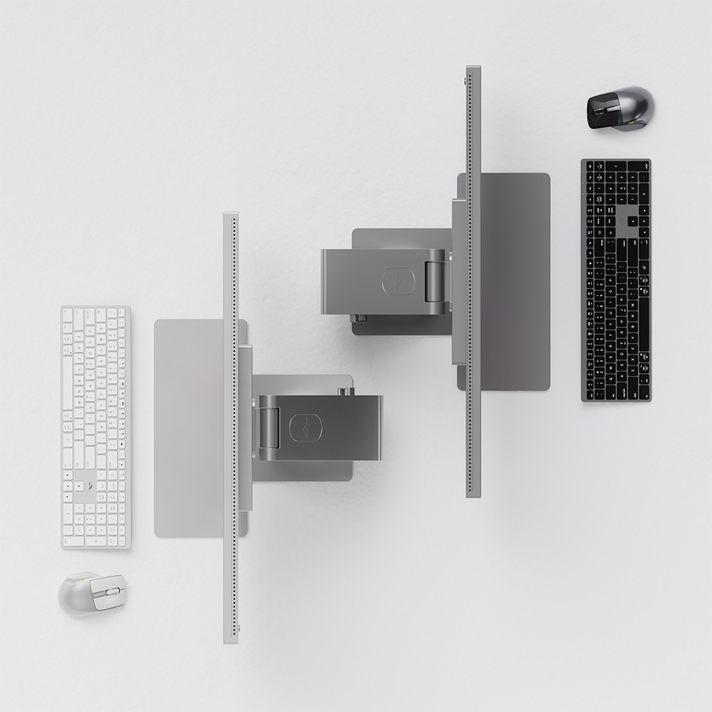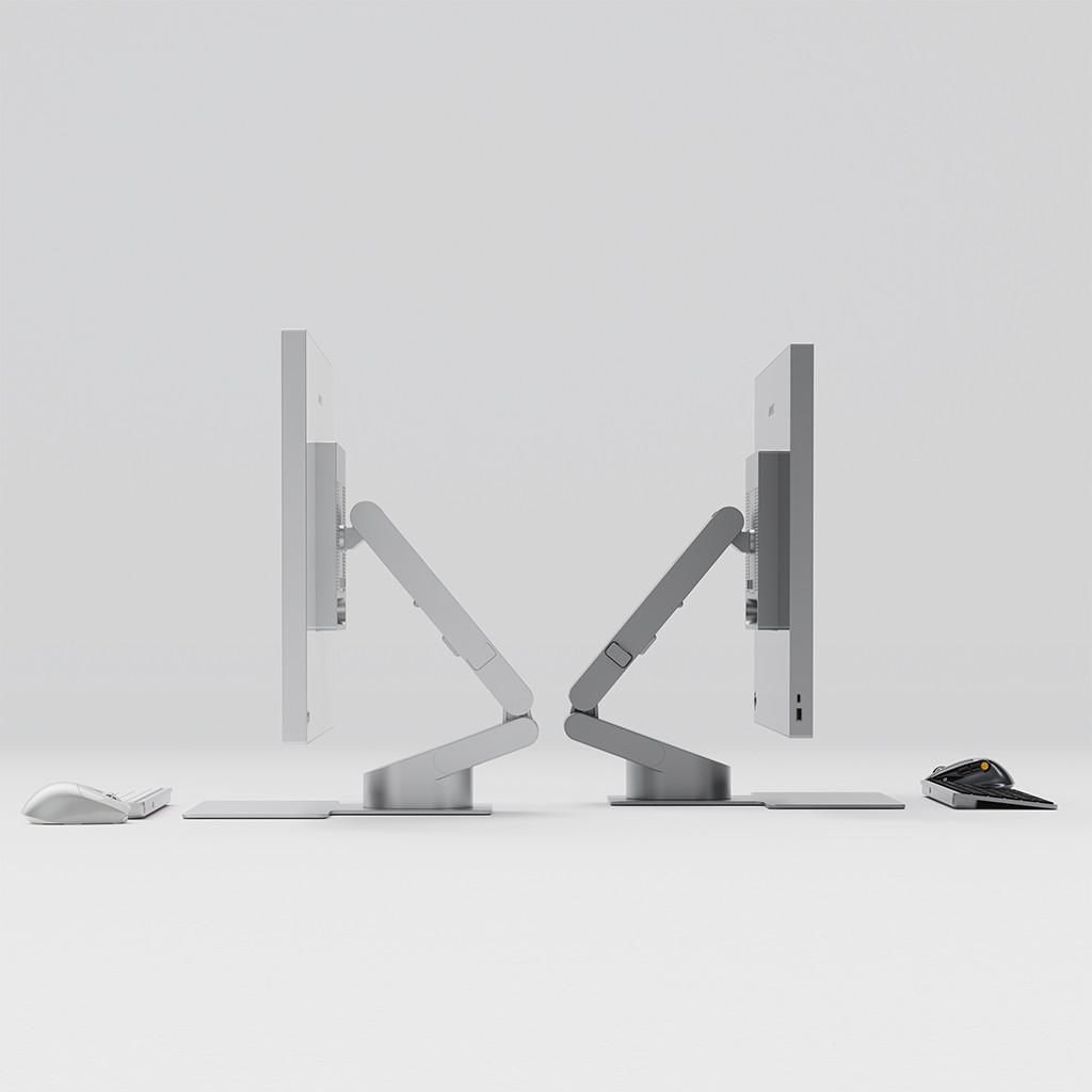 Stativet er utformet for at du raskt skal kunne tilpasse oppsettet etter oppgaven. Ha monitoren oppreist for daglig produktivitet, og fell den ned når du ønsker en lavere og mer praktisk arbeidsstilling, uten verktøy eller en komplisert justeringsprosess.