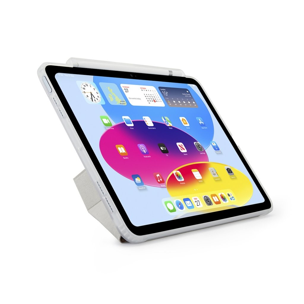Origami No3-etuiet har en revolusjonerende foldeteknikk som er inspirert av den eldgamle kunsten å brette papir. Det har to stativposisjoner for uanstrengt skriving og visning, i likhet med Apples Smart Cover, og ytterligere to bredbasisposisjoner som sikrer stabilitet og komfort for langvarig Netflix-titting, selv på de mykeste eller mest ujevne overflatene. Med én portrettposisjon er det perfekt for å holde tritt med videosamtaler og FaceTime-økter.