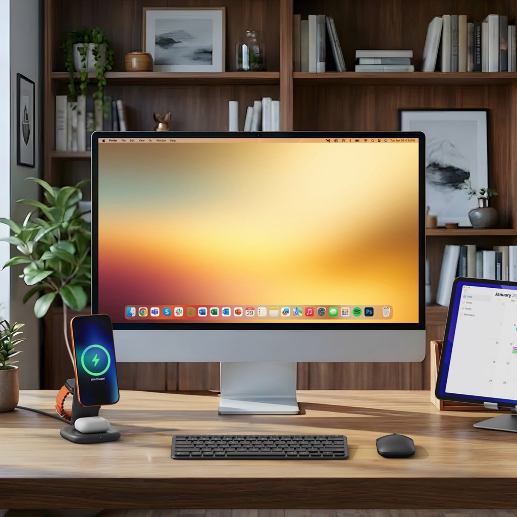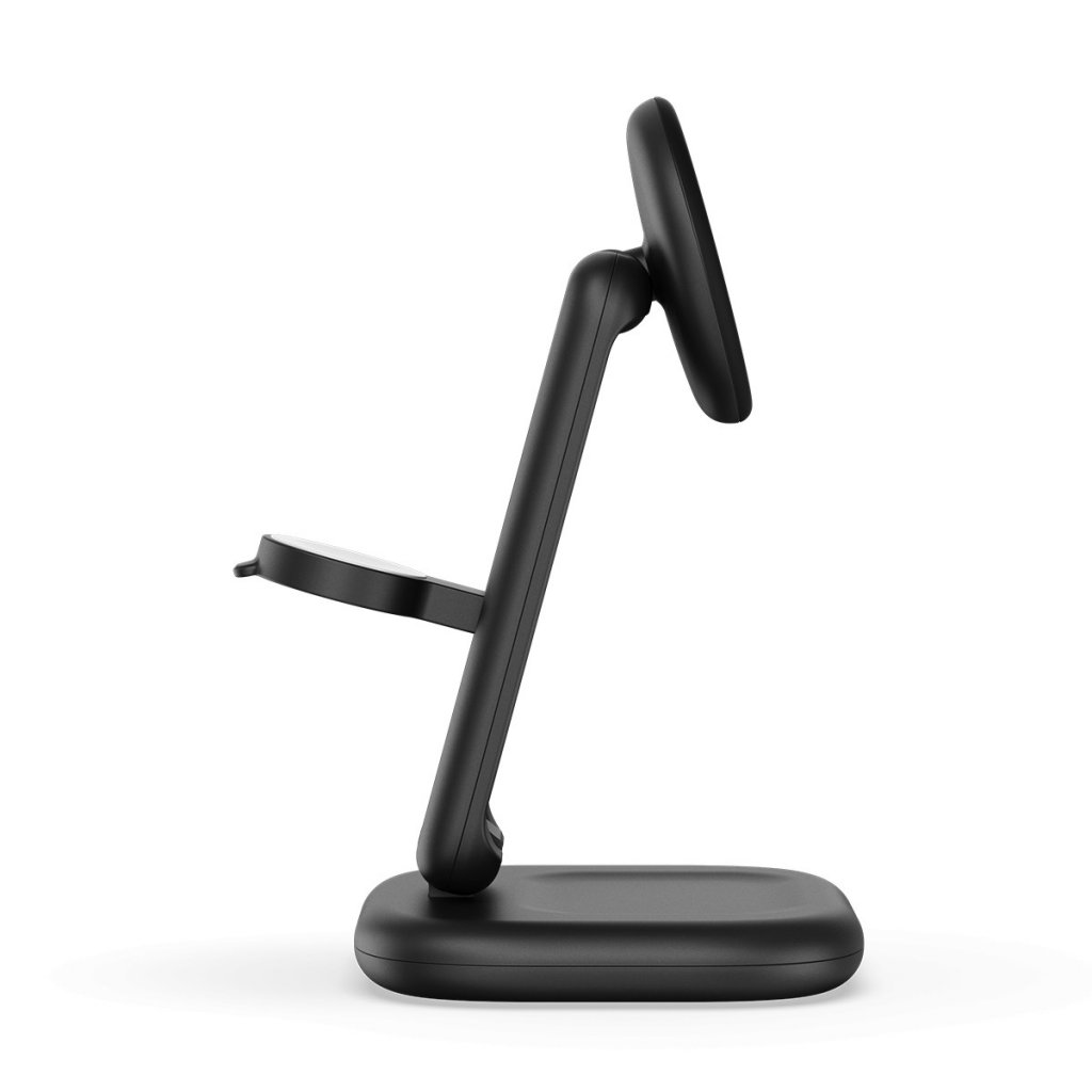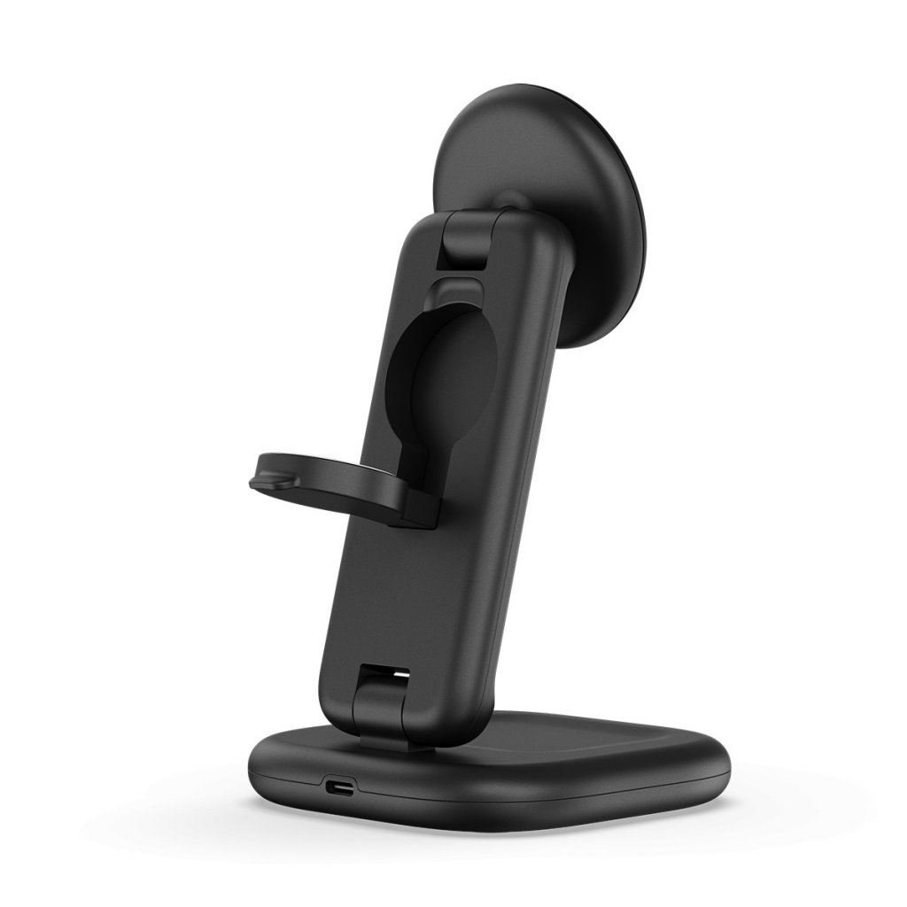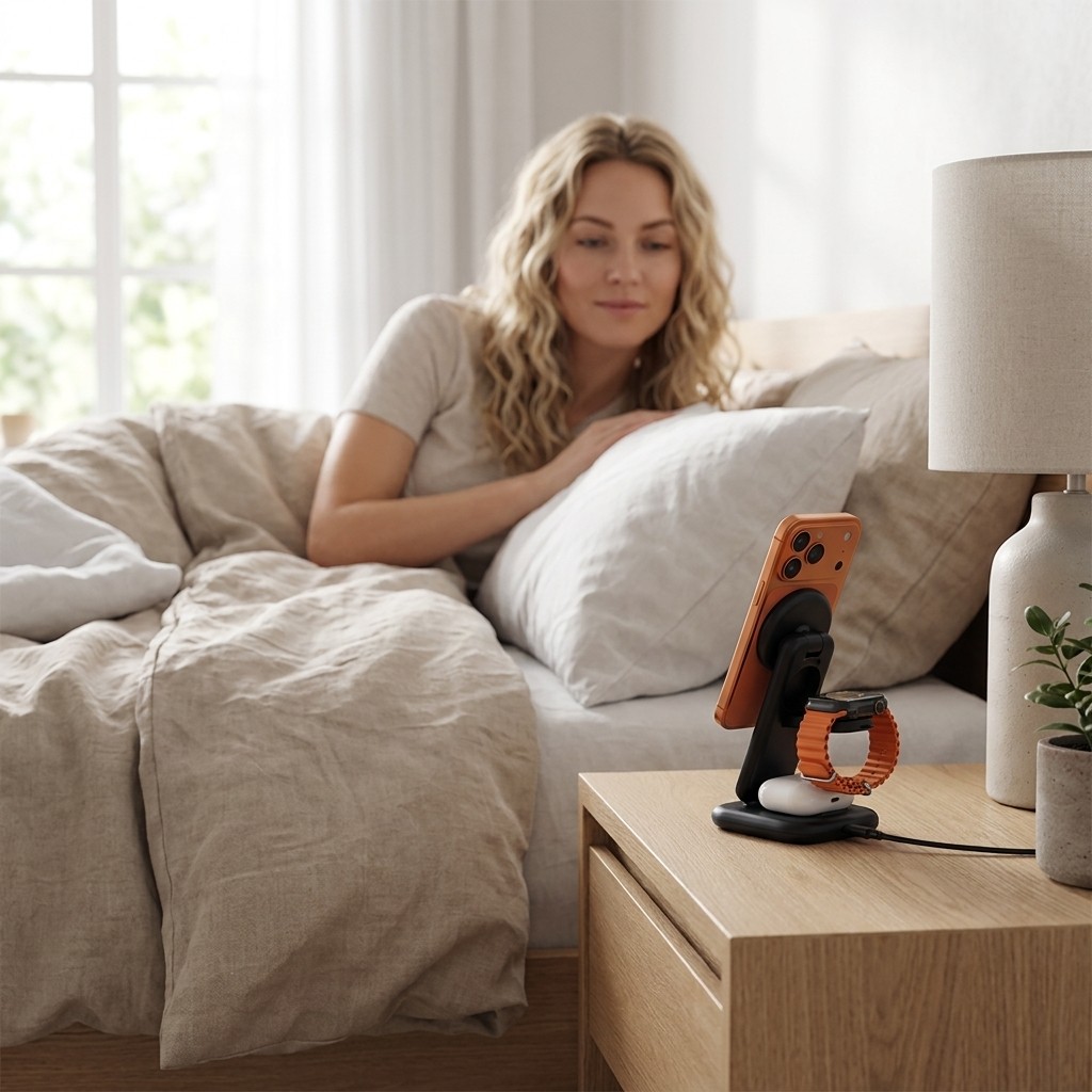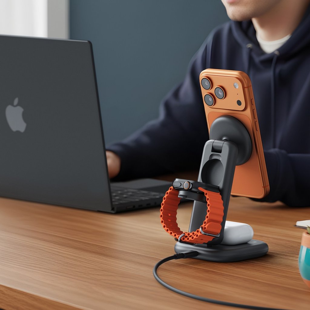 Ett ställ hanterar tre enheter samtidigt, vilket eliminerar behovet av separata laddare som tar upp plats på skrivbordet eller nattduksbordet. iPhone-plattan ger upp till 25 W, medan plattorna för Apple Watch och öronsnäckor ger upp till 5 W vardera. Snabbladdning för Apple Watch stöds för Apple Watch Series 7 till 11, Apple Watch SE 3 och Apple Watch Ultra Gen 1 till 3.