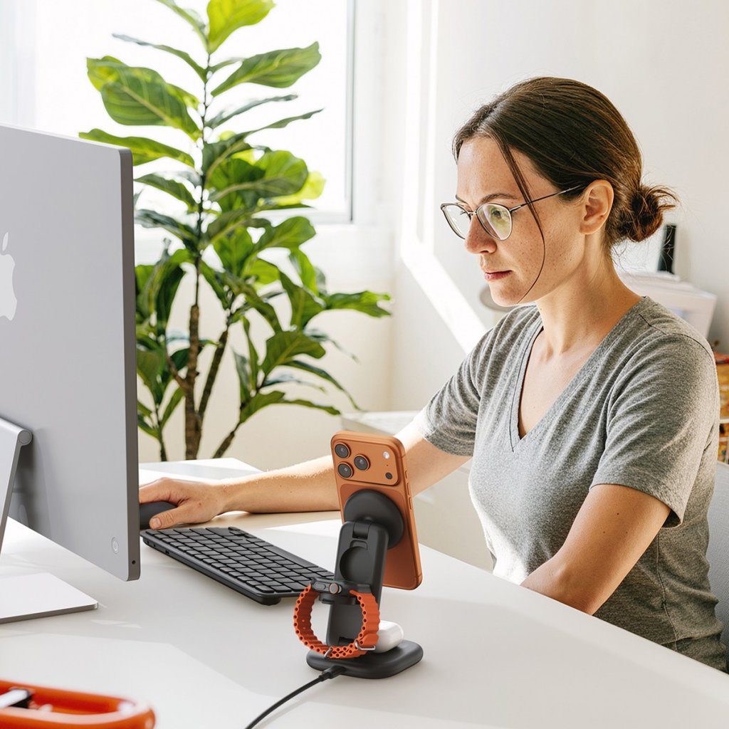 Stället ger upp till 25 W Qi2-trådlös laddning för kompatibla iPhone-modeller, vilket gör det märkbart snabbare och mer effektivt än vanliga trådlösa laddare. Oavsett om du vill ha en snabb påfyllning under dagen eller en full laddning över natten klarar stället båda utan kompromisser. Det stöder de trådlösa laddningsstandarderna Qi, Qi2, Q2.2 och MagSafe, vilket gör det till ett pålitligt val på lång sikt när du utökar din uppsättning enheter.