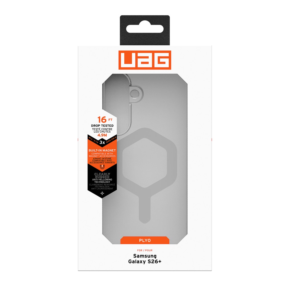 Urban Armor Gear Samsung S26+ Plyo Case with Magnetic Function for Optimal Protection and Design - Ice är byggt för daglig användning med en ren, lätt profil. Det kombinerar pålitligt fallskydd med en transparent, anti-gulnande design och en integrerad magnetmodul för enklare laddning och användning med tillbehör.